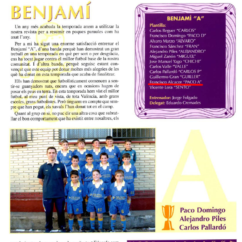 - 07年、バレンシア州U-14選抜チームの一員に選ばれる。